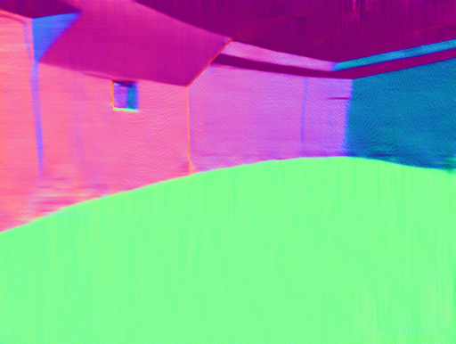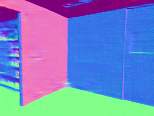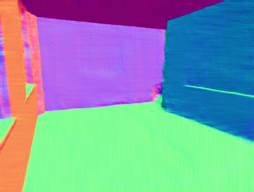 We introduce Room Envelopes, a synthetic dataset that provides dual pointmap representations for indoor scene reconstruction. Each image comes with three complementary views: RGB image, visible surface (depth and normals), and layout surface (depth and normals), with examples below. The visible surface captures all directly visible geometry including furniture and objects, while the layout surface shows structural elements as they would appear without occlusion. This dual representation enables direct supervision for layout reconstruction in occluded regions.