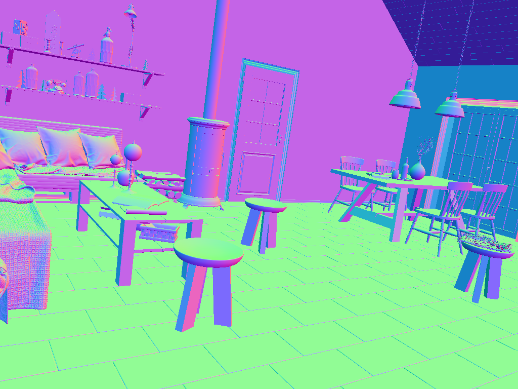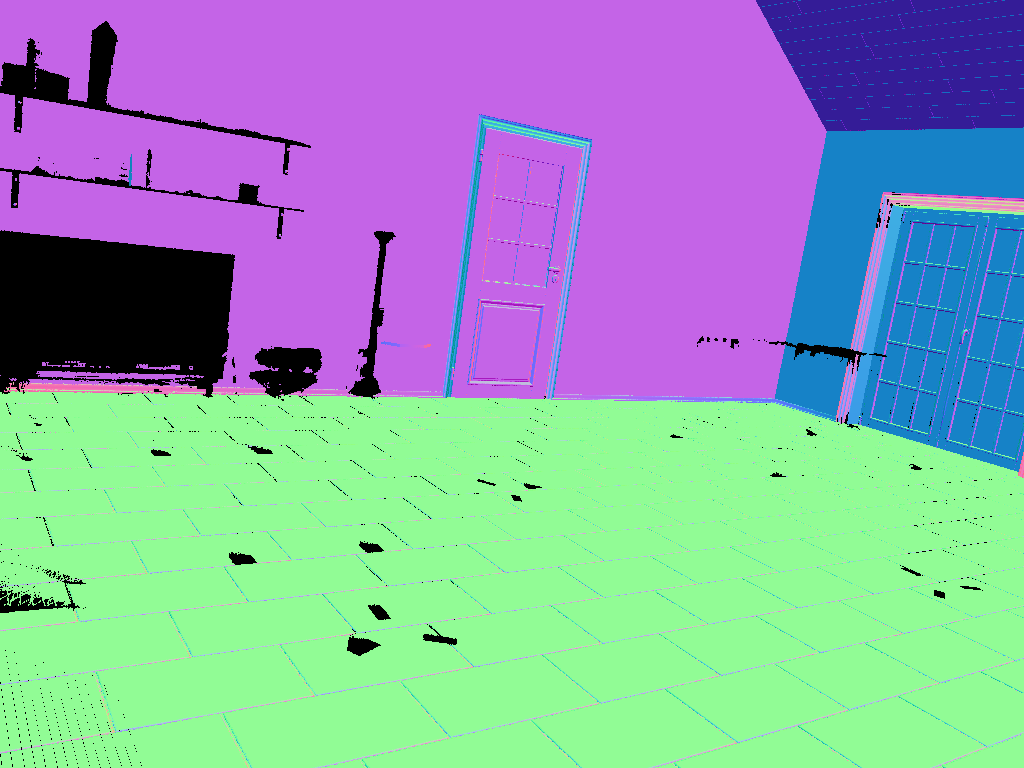 Room Envelopes Dataset: An indoor synthetic dataset providing an image, a visible surface pointmap, and a layout surface pointmap for each camera pose